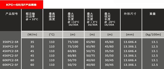KPC系列自调控电伴热带适用于管道、罐体、阀门、法兰、屋顶的除霜保温,以及其他需要伴热采暖场合。产品适用于防爆环境,含氟护套产品还可以使用在腐蚀性环境中。KPC系列自调控电伴热带最高耐受温度可达135℃,最高维持温度110℃。