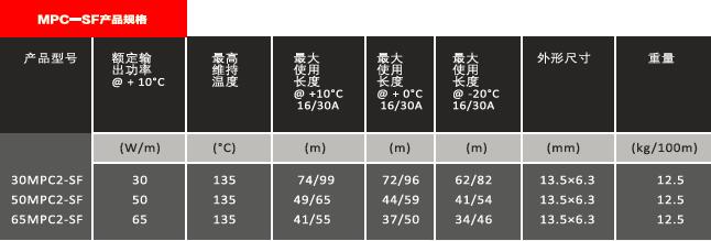 MPC系列自调控电伴热带适用于管道、罐体的工艺维温,产品适用于防爆环境,含氟护套产品可以使用在腐蚀性环境中。MPC系列自调控电伴热带是一种非可燃性芯带的高温加热电缆,产品芯带采用黑孚独特的阻燃芯带技术,具有不然性,自身工作时或放在外部火焰中也不会被点燃,最高耐受温度可达155℃,最高维持温度135℃。