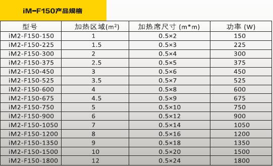 iM2-F 系列铝箔网发热地席适用于木质地板、强化木地板、毛毯下等应用场合的伴热采暖。地席体统安装时可以按覆盖区域要求任意剪切,也可多个地席系统一起工作覆盖大型区域;此外需要配备绝缘装置,尤其是安装在混凝土地面时。iM2-F系列有80W/m2、100W/m2多种功率可供选择,其中150W/m2可作为家庭地板采暖主要热源。
